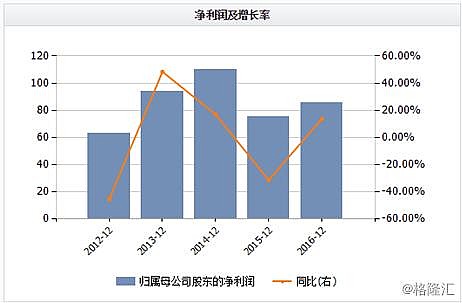 海螺水泥的业绩表现基本与行业走势吻合。2012年到2014年业绩稳步提高。2015年,由于大行业低迷,海螺水泥营业收入跌16.14%至509.76亿(人民币,下同),净利润同比下滑31.35%录得75.39亿。