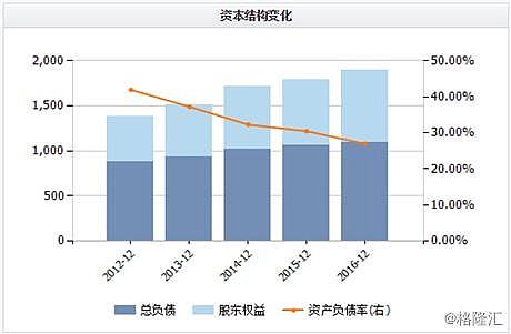 海螺水泥的资产负债率逐年减低。2014年、2015年、2016年的负债率分别为32.30%、37.27%以及41.95%。财务风险不大。