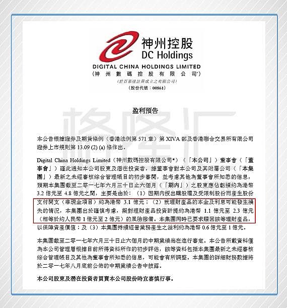 2)理财产品可能无法收回所做的风险拨备1.1亿-2.3亿港元;