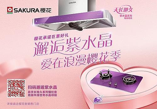 以SAKURA樱花为例,其专为“新婚族”设计的天长地久紫水晶系列烟灶,就非常贴心。它在烟机、灶具触控面板上,采用了象征爱情的浪漫紫色,代表守护和承诺,是“天长地久”的最好见证。同时,其炉灶火就有五种模式,煲汤、爆炒、炖煮、煎炸、快炒,每一种烹饪方式都有对应的火候,用户再也不用为掌握不好火候而犯难。更贴心的是,这款炉灶还能实现点火监控,及时提醒关火,保障安全。