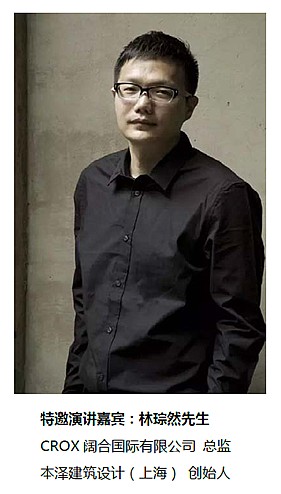 7月22日的开幕仪式上,现任CROX阔合国际有限公司总监及本泽建筑设计(上海)创始人的林琮然先生也将受邀发表一场主题演讲,与现场嘉宾、观众一起探讨“多元化与跨界”这个话题,寻找设计美学与艺术的创新力量。