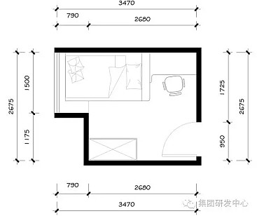 此户型为9.2平方老人房,设计上需充分满足老人的需求:实用、方便。