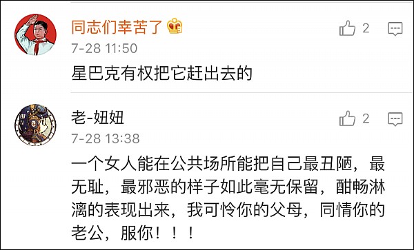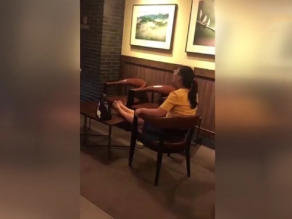 江苏宿迁一女子星巴克里把腿架桌子上 被制止后谩骂吐口水