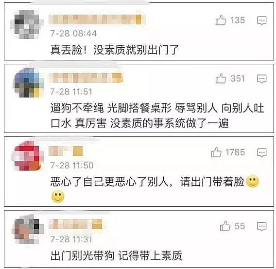 徐先生见女子根本不搭理自己,生气地说道,“你带着狗,光着脚丫子伸在餐桌上合适吗?与你美女的形象也不符合。”