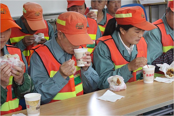 4月28日早6点,伴随着刚刚升起的朝阳,永和大王的工作人员和爱心人士——赵先生、宋女士来到了北京市丰台区环境卫生所服务中心大红门环卫所,为这里的环卫工人们送去了热气腾腾的永和大王早餐。
