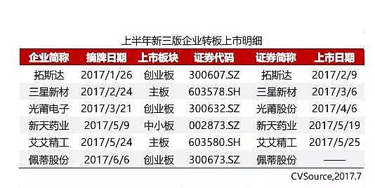 上半年摘牌企业数量共计160家,仅有6家转板摘牌成功,其余均为主动摘牌,根据规定,截止6月30日仍未披露年报将被强制摘牌,截止目前,股转系统已经陆续露出摘牌企业名单。三星新材成为2017年第一家成功转板登入主板的企业。
