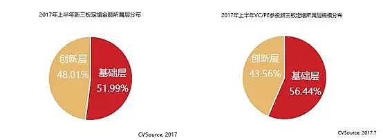 上半年VC/PE参与221家新三板创新层企业定增,投资规模达118.29亿元,占43.56%,参与338家新三板基础层企业定增,投资规模达153.26亿元,占56.44%。