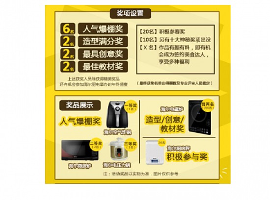 注:大赛截止到7.24号,想要参赛的用户可关注公众号海尔智慧厨房,及时了解大赛动态!