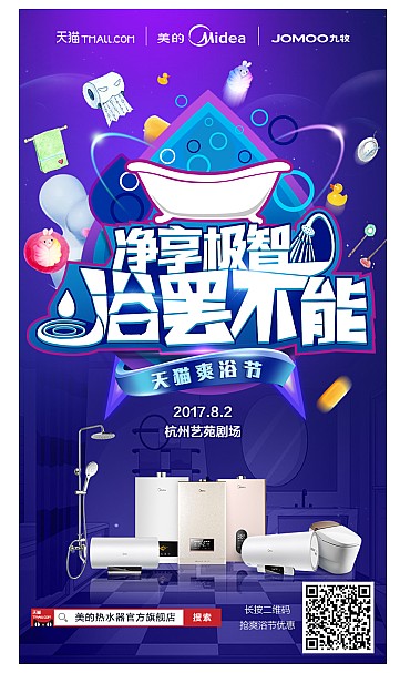 众所周知,如今的品牌营销形式多样,新的消费场景和消费模式让各大品牌不得不进一步思考用户,思考自己,以寻找更有效的营销突破口。美的作为国内家电行业领军品牌,近年来持续主打互联网营销新玩法,不但在营销上不断尝试最新潮的形式、内容,更在产品本身坚持创新,为发展注入新的内容。此次美的热水器联手天猫、九牧举办第二届天猫爽浴节以及“净享极智 浴罢不能”主题演发会活动,美的将重磅推出健康浴与智能浴两大系列多款实力新品,全面升级用户沐浴新体验!