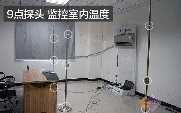 \u00A0 \u00A0 \u00A0 \u00A0 为了方便大家理解,在下图中,我们用白色小圈分别将室内9个温度计探头标出。