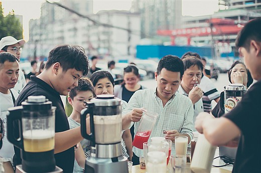 炎炎夏日,一杯冰爽的鲜榨果蔬汁,既能够提神醒脑又能够补充一天的维生素,备受男女老少的喜爱。无锡、合肥巡展现场设置的水料产品体验区人气满满,观众聚集在体验区周围,品尝缤纷多彩的冰镇果汁,享受夏日冰爽。