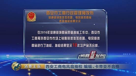 近期,西安市工商局对液体加热器和电风扇类商品进行了抽检,18批次产品不合格。
