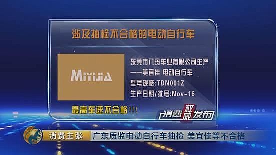 其中,东莞市八玛车业有限公司生产的美宜佳电动自行车,最高车速不合格。