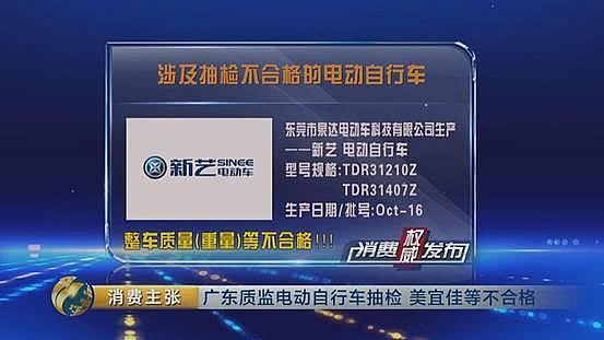 东莞市泉达电动车科技有限公司生产的2批次新艺电动自行车,整车质量(重量)等不合格。