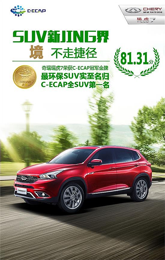 绿色认证SUV第一名\u00A0\u00A0瑞虎7斩获C-ECAP金牌评价