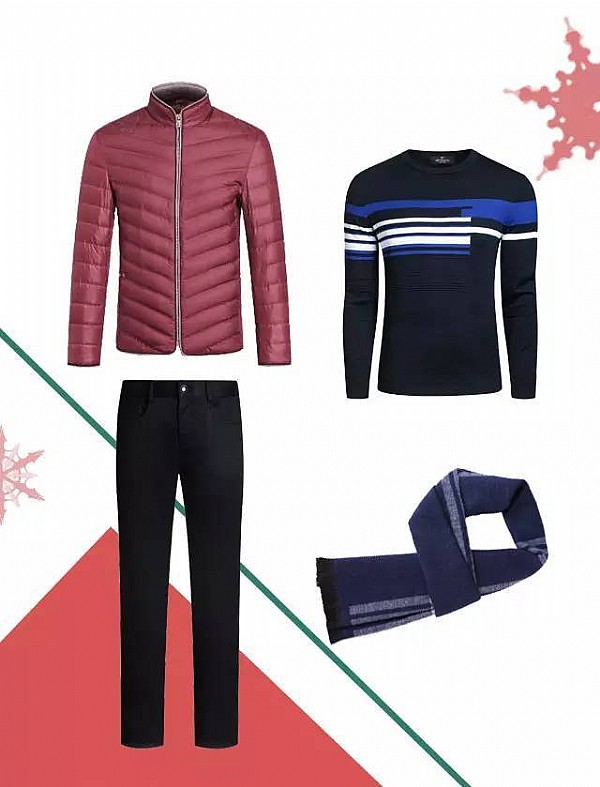 圣诞首选红色,这是地球定律。一件霸气的红色大衣让你瞬间成为吸睛焦点,红色显白还能提升气色,让你显得阳刚有活力。在内搭上,可以选择深色系的毛衫与黑色的裤子,毕竟红黑配是永恒的经典。再来条蓝色的围巾,与保暖又有范的冷帽,让这些微小的细节和配饰来提升整体造型的质感,保证你走在圣诞的街头回头率百分百。
