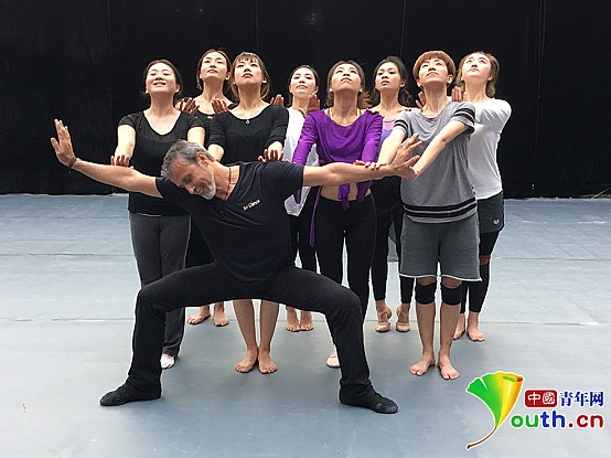 西班牙萨拉戈萨市立舞蹈学院当代舞教研组组长AlejandroSiveroni在2017年第二届鄂尔多斯草原国际舞蹈嘉年华中的大师课中与学生一起体会舞蹈的韵律。中国青年网记者 谢东樱 摄