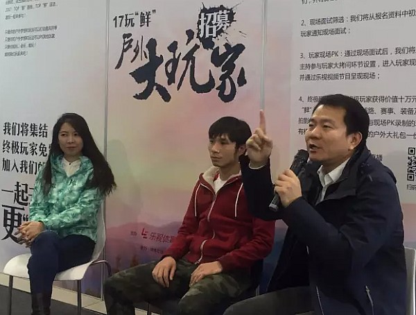 在国家会议中心正在召开的ISPO BEIJING展会2.216思凯乐展厅里,众多玩家与媒体、嘉宾聚焦节目,节目将分为“户外大玩家”招募、“玩家”现场PK、“玩家”线路直播三个阶段呈现,启动发布现场,“户外大玩家”招募活动正式开启。