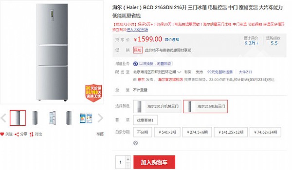 编辑点评:海尔的这款三门冰箱,不俗的外观设计,出众的制冷效果,电脑控温,保鲜持久,各方面表现都令人满意,京东商城促销仅为1599元的售价,性价比十足,推荐选购,喜欢的朋友赶快行动起来吧!