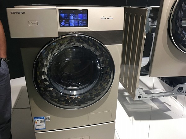 通过传感器,衣物与洗衣机连接了起来,而通过一台音响,一部手机,人也能与洗衣机相连。