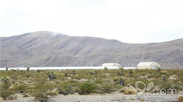 由于没有准确的路标,寻找FF工厂的难度非常大,然而在寻找的过程中,我们意外的发现了另一处惊喜,那就是根据特斯拉CEO伊隆·马斯克的大众交通白皮书而设计出的HyperloopOne。简单说它是一个依托真空管和电磁悬浮技术的超级高铁项目。偌大的荒漠中一条白色的密闭管道,相当震撼。