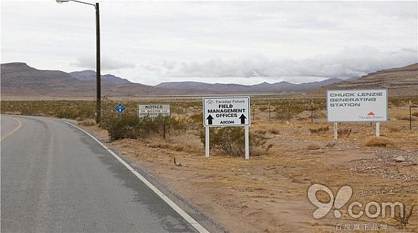 是的,我们找到了FaradayFuture的路标!一个孤零零的牌子立在荒漠之中。