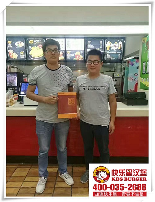 近日,彭先生和程先生二人更是通过对门店的考察,更加笃定了加盟的心。汉堡加盟店10大品牌——快乐星汉堡的加盟服务十分完善,无论是从前期的选址分析、技术培训、装修设计到后期的开店指导、节日活动策划、新品研发、物流配送、广告宣传等,总部十大团队都为加盟商一一安排,全程保驾护航,也让兄弟二人放下了心,就果断的签订了加盟合同。
