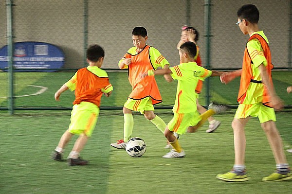 7月19日上午,“中国足球未来星”体验营的11位青少年来到足球馆一起进行专业的足球训练。不论是第一次踢球的小女孩,还是拥有丰富球场经验的小男生,都一改常态,在绿茵场上虎虎生威,专心致志跟专业足球教练学习足球技巧。基础训练结束后,11位青少年还分成两组进行了对抗赛,以检验自己的学习成果。