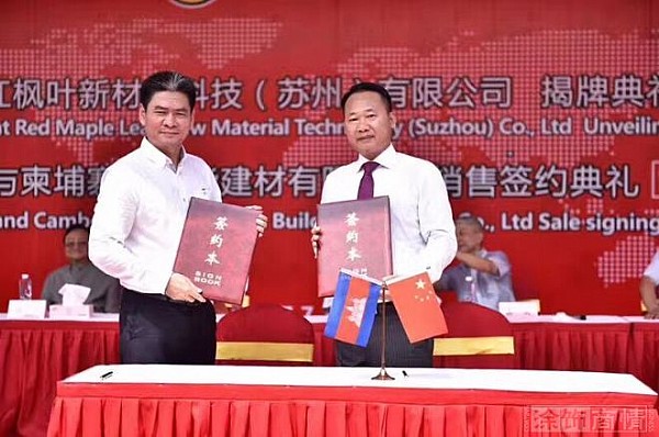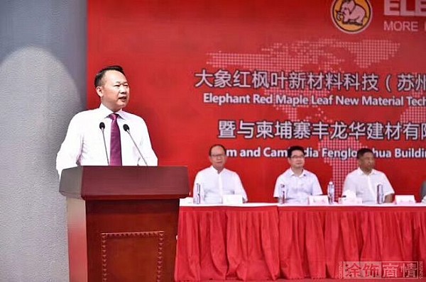 7月26日,大象红枫叶新材料科技有限公司(下称:大象红枫叶)揭牌典礼暨与柬埔寨丰龙华建材有限公司销售签约典礼在苏州隆重举行。中国记协党组书记翟先生、江苏省原王副省长、江苏省原政协陆副主席、中国涂料工业协会阎秘书长、吴江区委陈副书记、吴江经济开发区经济发展局颜局长、吴江银行庄行长、美国QEP国际建材集团Boiardi品牌亚太地区首席代表林先生、俄罗斯外贸银行公开股份公司上海分行行长巴莎先生、加拿大GVA公司董事长Giovanni Accurso、大象集团董事长杨少武、柬埔寨丰龙华建材有限公司董事长郭志丰及国家涂料质量监督检验中心黄副主任等嘉宾出席,共同见证了这一历史时刻。