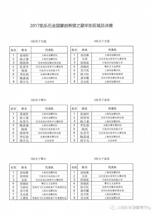 原标题:【捷报】2017凯乐石全国攀岩希望之星华东区域总决赛取得佳绩