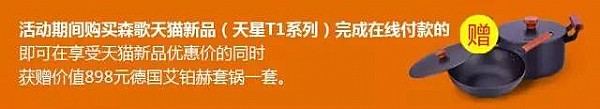 (3)活动期间,森歌天猫旗舰店天星蒸箱款T1Z,原价14620元,活动仅售10800元。