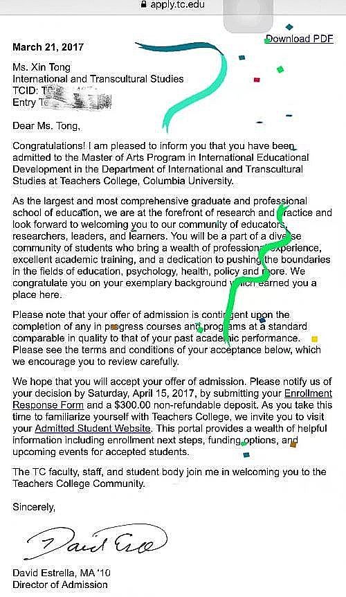 一年前,在哥大,童馨还是只是作为一个交换生。等到月底,她再回哥大时,已经变成了一名正式在注册的学生。“再回去时,虽然一切都是熟悉的,但我想我还是会很激动。”对于曾作为哥伦比亚大学交换生的童馨来说,这应该是最圆满的结果。