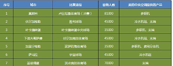 据了解,凭借国际领先的技术产品和专业完善的服务,美的中央空调不单成为俄罗斯世界杯的场馆空调供应商,还先后成功服务于2016年巴西奥运会、2014年巴西世界杯、2015年非洲运动会等国际顶级赛事,并获得用户的一致好评。