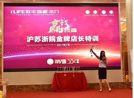 在学员们热切期待中,联丰木业总经理、商学院院长李玉明先生走上讲台,他就店长三大主要职能、三大知识系统,从优秀到卓越的三大层级作了精彩演讲。如何打通单店营销闭环,实现业绩倍增,面对新形势下的管理、激励、促销、话术、客情五大系统,李总以自己地板行业近二十年的丰富从业经验和参训学员们作了二天一夜的精辟分享。想成为赢家,必先成为专家,无论是五大产品定位、FABE销售法则还是家居装修风格,“肉搏”的实战经验,贴地气的幽默风格,一个个演讲主题都让现场的学员们获益百倍。