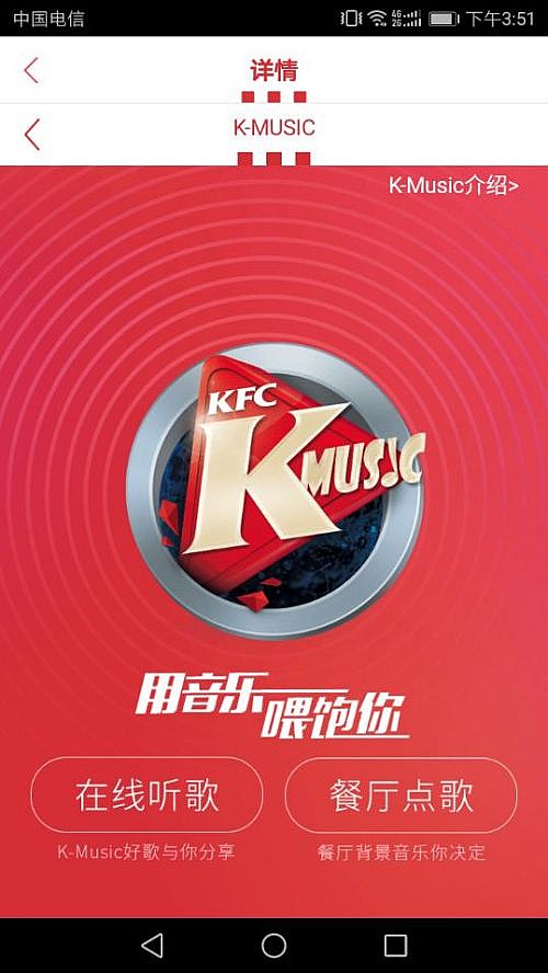 仔细观察手机的UI界面,给人的第一感受就是清新、简洁,这是基于Android 7.0内核定制而来的EMUI 5.1系统,同时已经为吃货一族预装了肯德基APP。现在通过肯德基APP的K-music点歌平台,还能在全国4000+肯德基门店中,享受餐厅背景音乐自由切换的体验。边享受美食边聆听自己点的音乐,想想真有些小惬意。不仅能点歌,预装的肯德基APP中还将额外赠送用户价值10万的K金和10张1987年经典价土豆泥0.8元/杯优惠券,是不是相当超值?