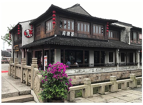 粉墙青砖黛瓦,小桥流水人家,河边的这栋木质二层小楼正门上,挂着一块黑底金边牌匾,若不是上书正楷“肯德基”三个大字,远远望去,这家餐厅仿佛隐没在一副江南水墨画里。无锡肯德基荡口古镇餐厅,由内而外都浸润着画意。