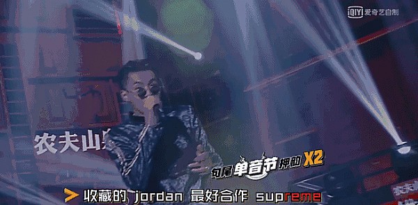 Air Jordan系列是《中国有嘻哈》期间陪伴吴亦凡时间最长的系列(目前为止),在1 vs 1战、导师选择甚至是赞助节目的麦当劳广告片中。