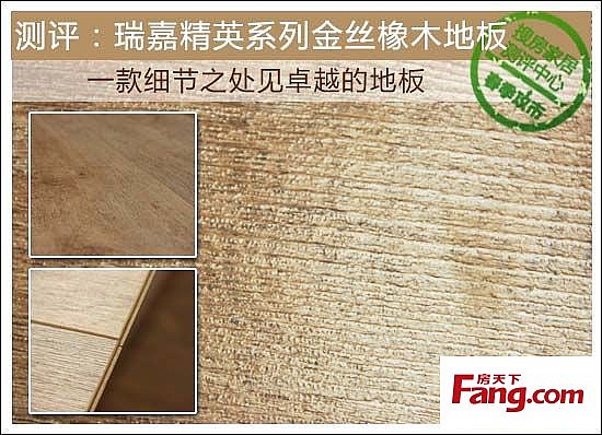 [搜房网\u00A0测评中心]强化地板一直凭借其过硬的质量受到消费者青睐,耐用加美观是这种地板的优势所在,相比实木地板其价格也更容易让消费者接受。现在市场上各种名目的强化地板总是让业主眼花缭乱,能够在细节之处取胜才能赢得消费者的芳心。本次测评员为大家展示的是瑞嘉精英系列金丝橡木B6606地板,作为瑞嘉2011年315期间的新品,它的卓越品质值得您细细品鉴。