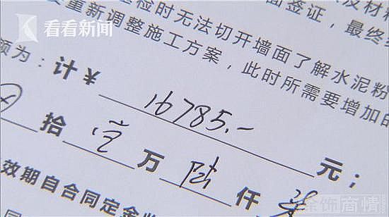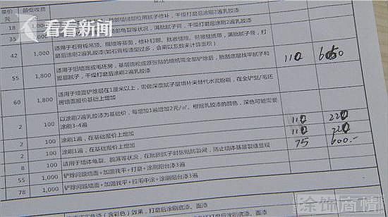 由于当时相关清单都没有给到曹先生,对于这种说法,看看新闻Knews记者只能来到立邦总部核实,立邦刷新服务商项目负责人郭盛成拿来了材料收费单,只见这份手写清单上多处涂涂画画,但明确写着内墙面积112平米,不包含顶。对此,郭先生说,签合同时候客户认可这个面积,如果多量平方数会按照结算时实际测量计算。他甚至说,还是他们主动发现面积不对的,至于为何清单不给客户,工人施工水平为何不佳,他都说不清楚。只是强调每一步都有竣工验收单,客户也签字了。