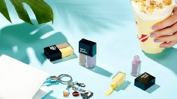 在周边方面,COSTA也不再局限于杯子这一种品类。除了高颜值的徽章和钥匙扣,COSTA也与年轻女性群体中有口皆碑的小奥汀合作,推出以酷乐冰为灵感制作的唇彩及指甲油等彩妆周边,俘获一大批少女心。