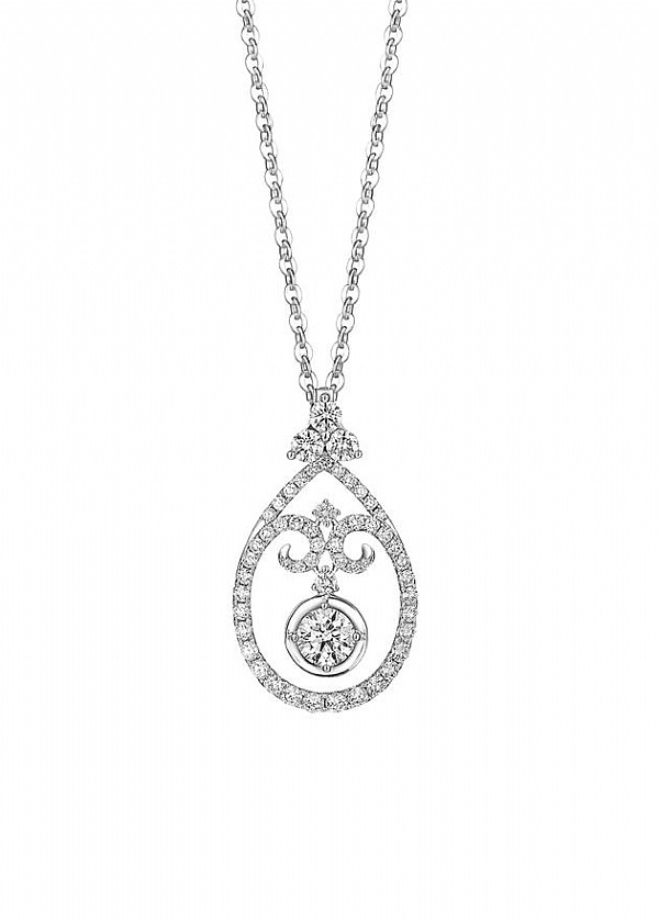 以考究的工艺打造钻石项链妙曼的线条,演绎出女性的柔情似水,晶莹剔透的钻饰令人怦然心动,配上端庄得体的礼服,散发出清新脱俗的动人气质。两款钻石挂坠均可单独佩戴。