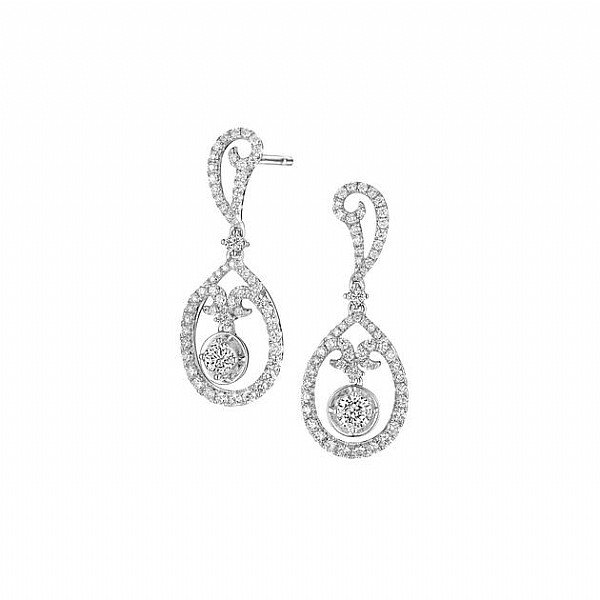 婉约玲珑的设计赋予钻石首饰套装不一样的活泼气息,灵动的曲线配衬钻石,展现出新娘子的美态,在淡雅的妆容下更显眩目。钻石挂坠及耳钉可独立佩戴,幻化出不同风格以配合婚礼上的多变造型,让新娘时刻绽放幸福的光芒。
