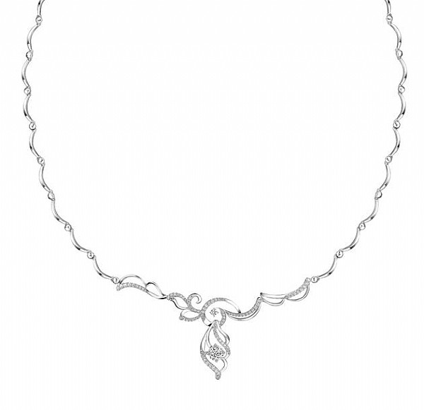 以婚纱上层层浪漫的蕾丝为设计意念,打造优雅的通花图案,柔美的弧线上镶有闪烁的钻石,映衬新娘白皙的肌肤和红润的脸颊,焕发迷人的风采。两款钻石项链的挂坠均可灵活地拆下独立佩戴,幻化出另一款不同效果的钻石项链,或高雅瑰丽,或简洁精巧,满足不同场合的搭配需要。