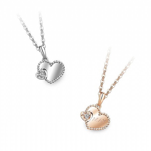 即将步入人生另一个重要的阶段,好姐妹们坚定的目光让新娘更感幸福。一众的好姐妹们为婚礼而奔走张罗,一直在身旁默默支持,在大喜之日不妨准备一份窝心的小礼物来表达谢意与祝福。心形钻石挂坠设红色及白色以供选择,圆润的小珠加强质感,另一颗心则缀有闪亮的钻石,两颗心紧紧相连,更可于心形内镌刻个人化的字词,记录闺蜜之间深厚的情谊,让挚友深深感受到友情的珍贵!