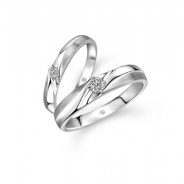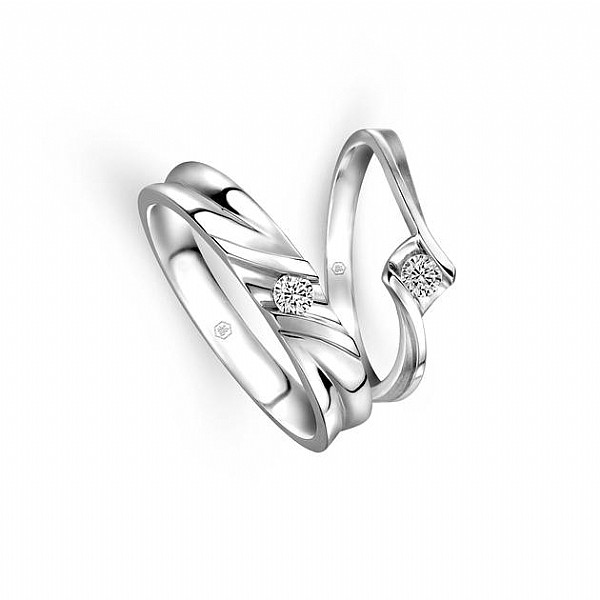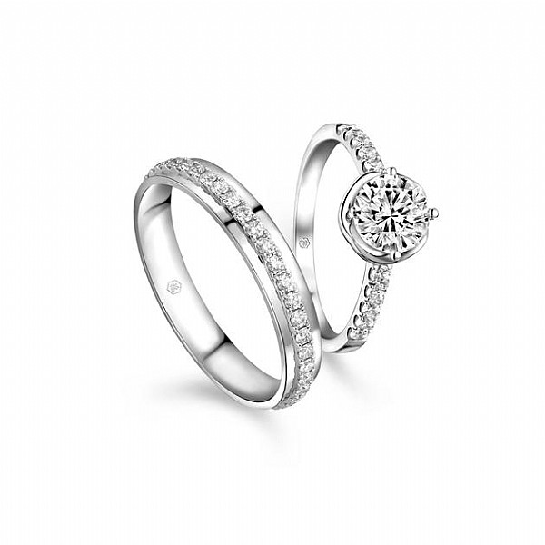 戒指以每个人独有的指纹作设计意念,以指纹的独特性诠释出每一段独一无二的爱情故事。对装戒指上的两个指纹印记可拼凑成心形,寓意命中注定的爱情,让伴侣成为彼此生命中不可或缺的另一半。订婚戒指以经典的四爪镶嵌,配合车花工艺,突显钻石的莹亮如月的光彩。层迭有致的线条除了刻画出指纹般的图案,更彷如烙印上专属二人的爱情年轮,随着年岁的增长,两人经历高低起伏,一圈一圈的年轮印证着这段深厚的爱情,愿彼此成为对方坚实的依靠。