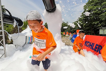 而参加此次科勒·2017青岛家庭乐跑活动的跑者,既可以感受5公里跑玩的乐趣,又能体验到专业10公里竞速的快感。其中的“5公里家庭跑“设有“泡泡大作战”、“热带雨林”、“马桶人”等趣味十足的互动点,为夏日海滨带来别样的亲子嘉年华。沿途,数位穿着奇异造型的“马桶人”将吹起五彩缤纷的肥皂泡世界;“泡泡赛道”将让家庭成员们体验前所未有的奔跑乐趣;跑者们还可在“热带雨林”里洗去身上的热浪,调整状态。现场更有令人心动的丰厚的奖励: 最先冲过终点的前三组家庭将依次分别获得价值7000元、5000元和4200元的科勒明星产品智能座便盖板一个。