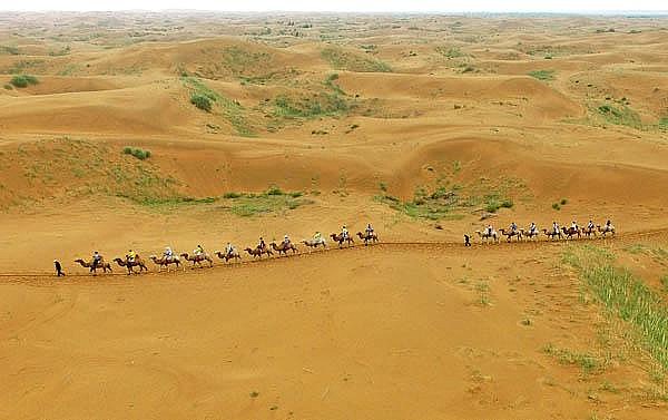布和三兄弟治沙多年的银肯塔拉已成为当地沙漠治理生态旅游的样本。图为