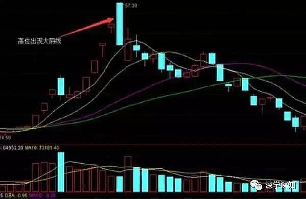 3、大阴线卖出,在股价上涨过程中,突然收根大阴线,果断卖出。一般股民看到大阴线都怕了,更何况还是在高位。