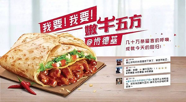 几个月前,为了庆祝入华三十周年,肯德基将经典产品吮指原味鸡和土豆泥调回了 1987 年的价格,还重新上架了被很多人念念不忘的嫩牛五方,让大家回归初心。
