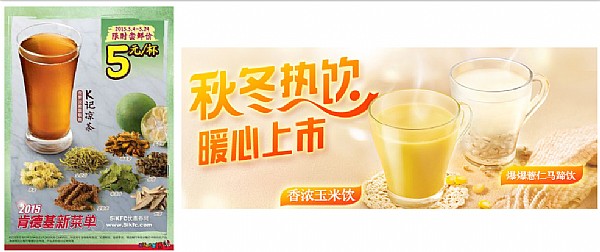 还记得有一年冬天,肯德基里出现了暖暖的“爆爆薏仁马蹄饮”,将传统薏仁做出了弹爆口感;还有一年炎夏,肯德基还甚至拥抱了内含中草药成分的“降火”凉茶。